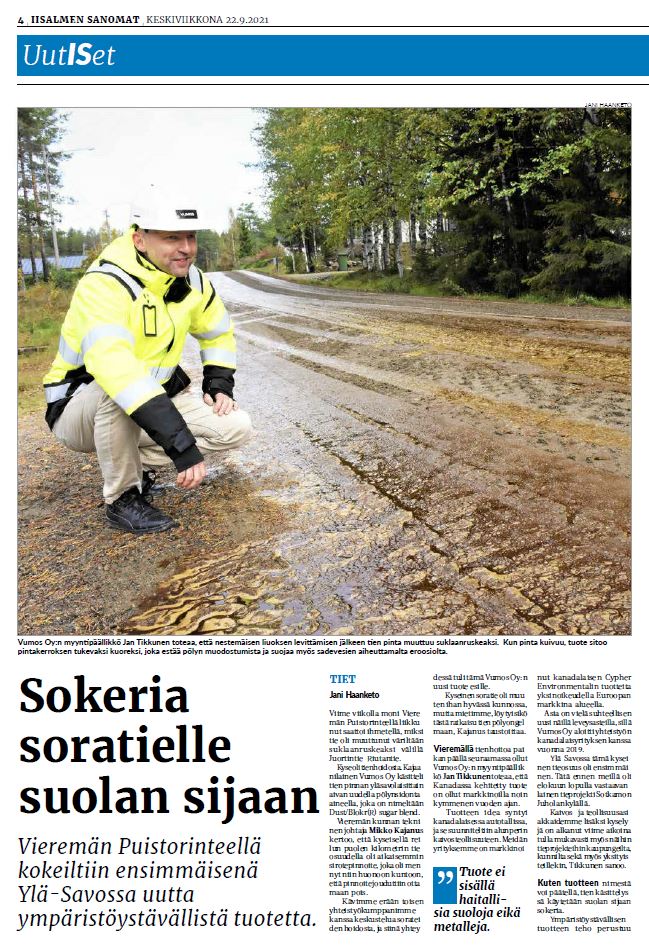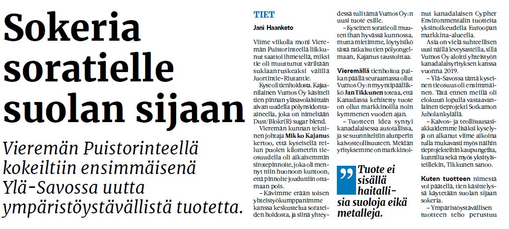 Vumos road project in Vieremä was also published in the regional newspaper Iisalmen Sanomat. Despite the low temperatures we managed to complete the project in time.