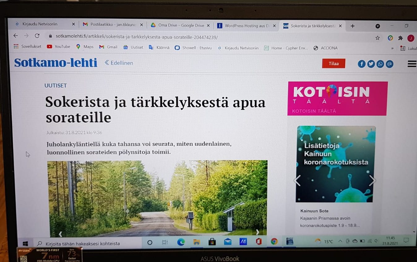 Our road project in Sotkamo captured the attention of the local people and their interest to a whole new way of treating road surface using Cypher Environmental´s Dust/Blokr SB. Read more